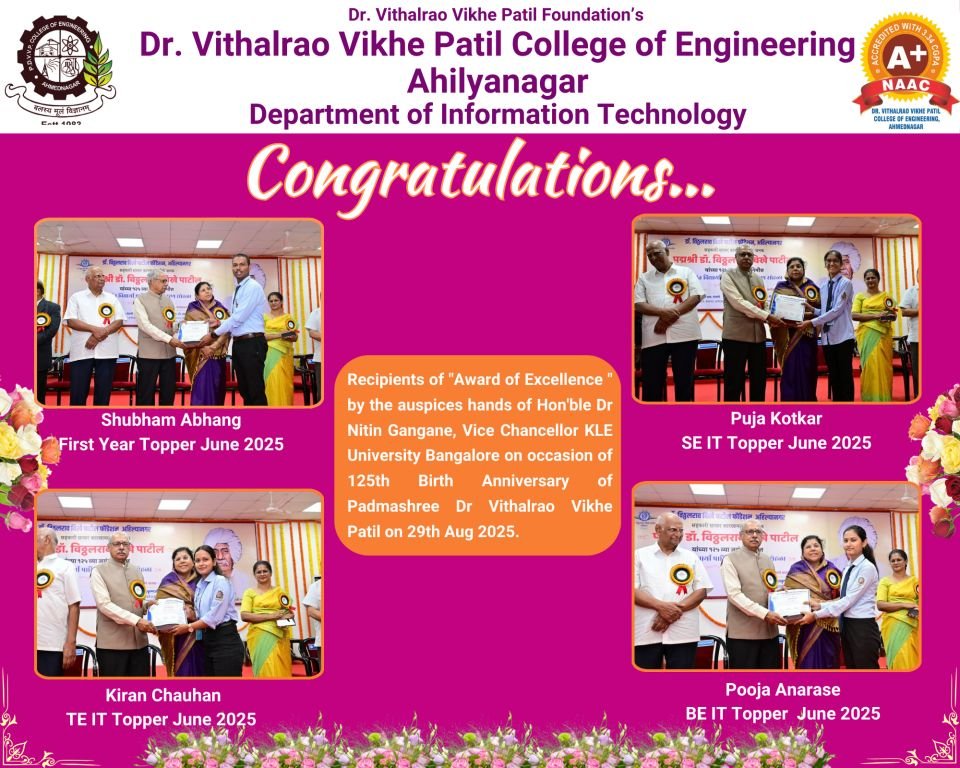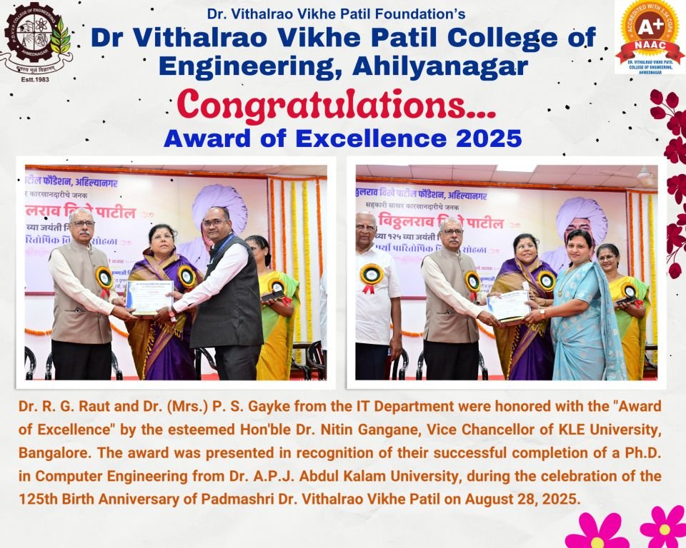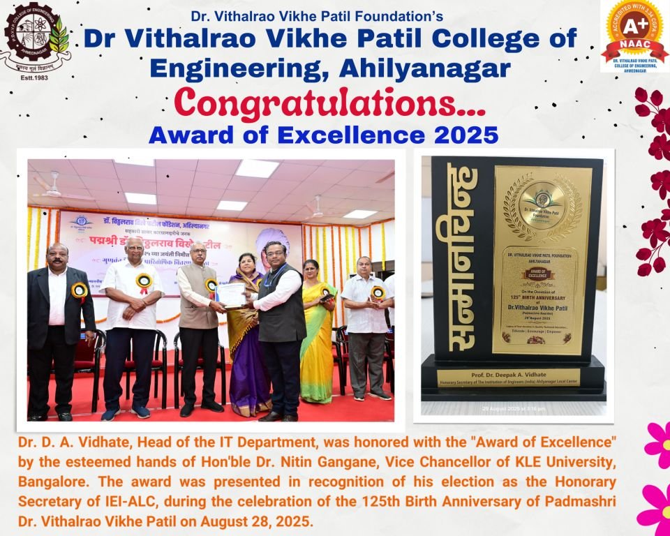 It is a privilege to be associated with Dr. Vithalrao Vikhe Patil Engineering College,